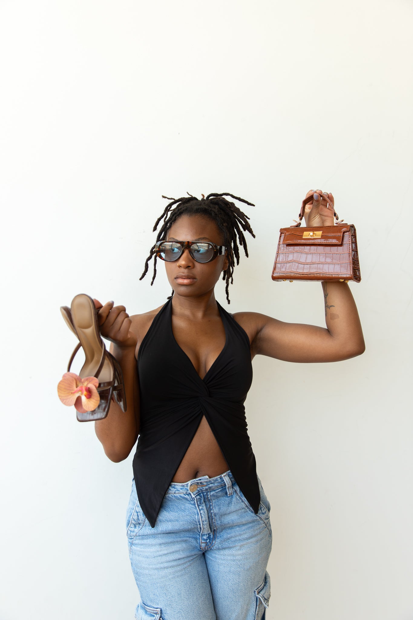 Introducing The Upper Westside Handbag in Cognac. Made from vegan leather and adorned with snap closures and a stylish crocodile print. Carry all your essentials with a chic flair.